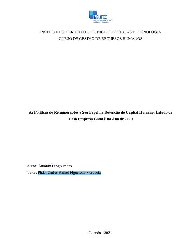 As Políticas de Remunerações e Seu Papel na Retenção do Capital Humano. Estudo de Caso Empresa Gamek no Ano de 2020