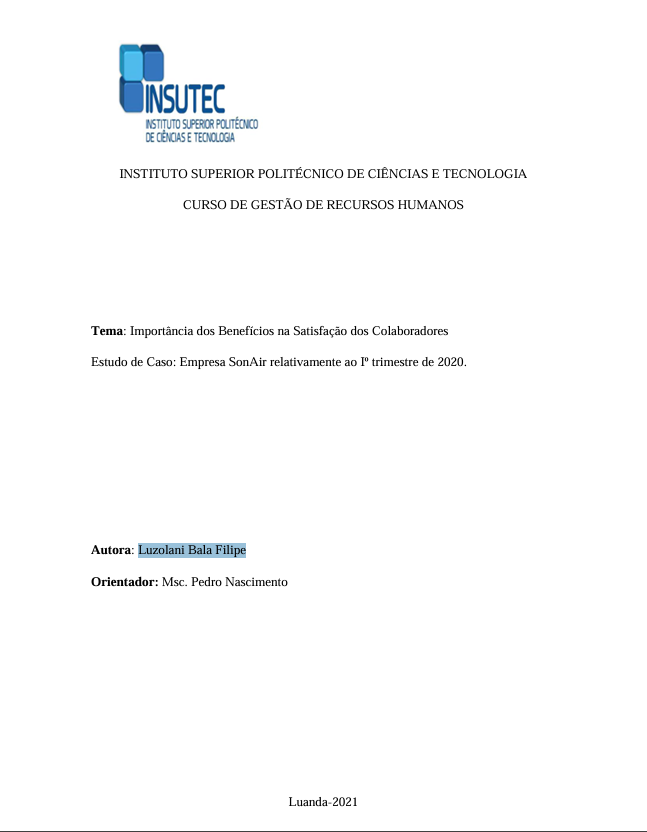 Este trabalho tem como objectivo geral descrever quais benefícios organizacionais tem influenciado na satisfação dos colaboradores da Empresa SonAir. Foram usados métodos e procedimentos para elaboração deste trabalho como, pesquisa des...
