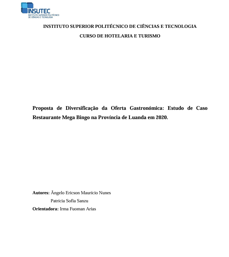 Proposta de Diversificação da Oferta Gastronómica: Estudo de Caso Restaurante Mega Bingo na Província de Luanda em 2020.